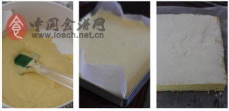 9、将蛋糕糊倒入铺了油纸的烤盘中。