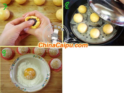 9、小心取出,每一个都均匀的滚上细椰丝即可。