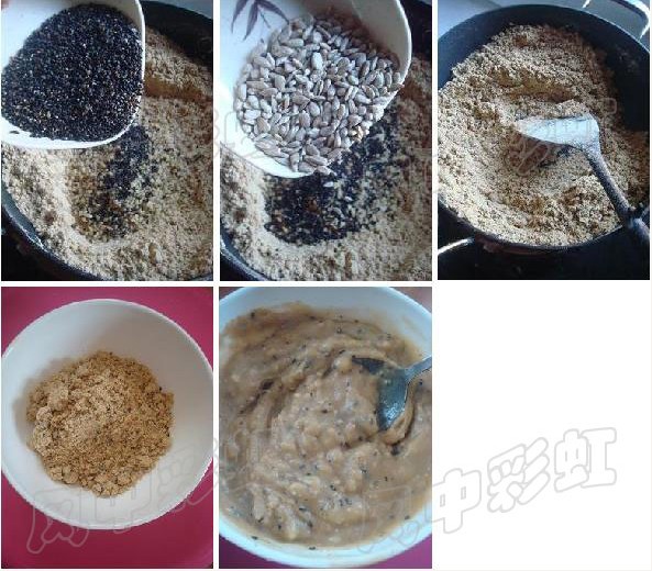 13、吃的时候,取几勺油炒面放入碗中,根据口味,加入糖或盐,再倒入沸水搅拌成糊状即可。还可以在上面点缀一些葡萄干等干果。