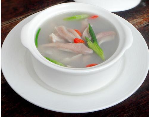10:加入适量清水和几片生姜,盖上盖子大火烧开,转中小火慢炖2个小时左右,这时候汤汁奶白,而且有点稠。