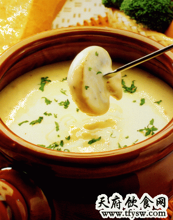 鲜蘑菇300克,土豆汤(土豆400克,水1500克煮成的汤),芹菜末少许,黄油25克,面粉25克,奶油100克,白兰地酒2.5克,精盐15克,胡椒粉适量。
