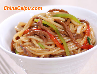 材料:米粉150g,牛里脊肉100g,青红椒各半个,大蒜几瓣,香菜少许。