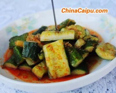 7、把煮开的酱汁淋入黄瓜中;放冰箱冷藏1小时后取出食用;