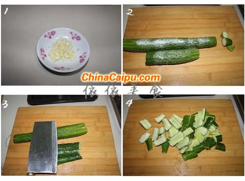 1、蒜头拍扁,去衣,剁成蒜蓉;