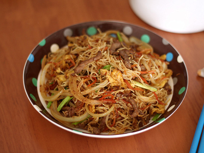 咖喱牛肉炒米粉上海这边卖炒米粉的很少,大多数都是桂林的汤米粉,特别怀念家乡的炒米粉,那味道特别好。这款咖喱牛肉炒米粉,芳香四溢,美味十足,想家的时候来一份,怀念曾经的味道。材料:细米粉150克、牛肉50克、胡萝卜半个、洋葱半个、鸡蛋1个、小葱10克、咖喱2快、酱油5ml、盐2克、油适量。做法:1、米粉在温热的水中浸3分钟捞出,再放入冷水中浸2分钟。2、捞出,沥干水分。3、牛肉切丝,倒入酱油拌均匀,再倒入适量的油抓板均匀,腌制15分钟。4、洋葱、胡萝卜切丝、小葱切段。