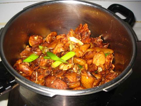 2.炒锅上火放入少许油,烧热后倒入糖、酱油、盐、料酒、葱、姜和适量水,烧开后撇去浮沫,下入炸好的鸡块,汤开后,用小火焖至酥,将鸡块捞出装盘,将原汤继续熬至汁发黏时,淋在鸡块上,即可装盘食用。