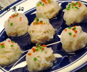 3.在肉丸子的外面绕上萝卜丝,放在盘子上,用高火蒸5分钟。