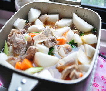 白萝卜富含大量的维生素C和微量元素锌,可以有效地增强机体免疫力,提高人体的抗病能力。白萝卜中的芥子油和粗纤维能够加快胃肠蠕动,促进消化、增进食欲。白萝卜味辛性凉,具有清热生津、顺气化痰的作用,将白萝卜、荸荠和猪肺同煮,可以有效地治疗哮喘。除此之外,白萝卜还有很好的美容功效。白萝卜中的维生素A、维生素C等能够防止皮肤老化、保持皮肤的白嫩。