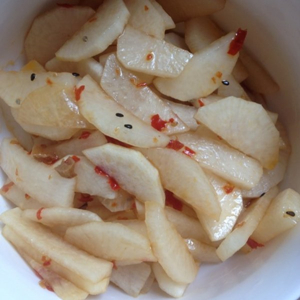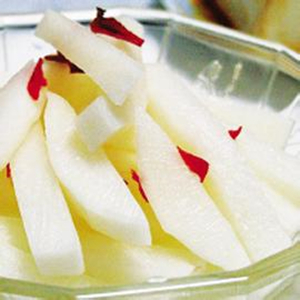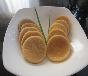 3、切白萝卜片时不要切得太薄,太薄虽然易入味,但就不脆了。