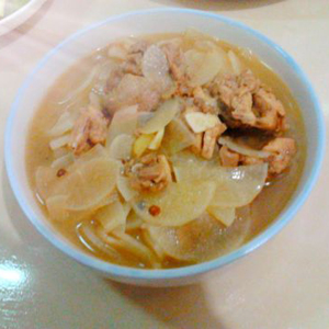 6、吃的时候,肉和白萝卜连汤一起装碗,吃肉喝汤。