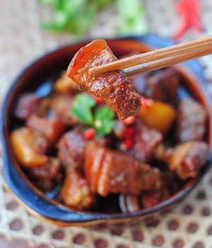 【加入瘦肉一起炖煮】在做五花肉的时候添加一些去皮瘦肉,可以起到吸收部分油脂的作用。