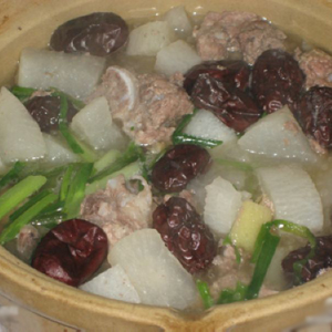 推荐食谱一:在冬天吃羊肉可以驱散寒冷、补气益血、滋养肝脏。但是羊肉吃多了容易上火,所以和有着清凉作用的白萝卜搭配在一起吃能够化痰、泻火,让营养互补。