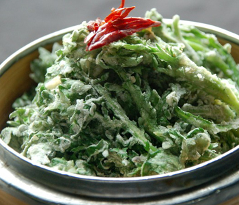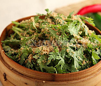 粉蒸茼蒿是茼蒿众多做法中的一种,人们在买回茼蒿以后,经常的做法就是炒茼蒿,凉拌茼蒿等,粉蒸茼蒿则不是经常看到的一种烹饪方法。其实,粉蒸茼蒿的做法也是比较简单的,以茼蒿为主要食材,再配之以米粉,准备好调料,即可享受这道独具风味的粉蒸茼蒿啦!
