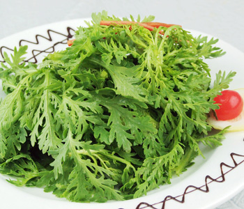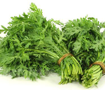 茼蒿含有广泛而丰富的营养,尤其是胡萝卜素和矿物质含量较高。其纤维细嫩,容易消化吸收,对儿童发育成长和老年人胃肠吸收不良均很有好处。另外,茼蒿中铁的含量较多,对儿童生长发育及贫血患者有一定帮助。此外,茼蒿还含有一种挥发性的精油以及胆碱等物质,因此具有调胃健脾、降压补脑等效用。常吃茼蒿,对咳嗽痰多、脾胃不和、记忆力减退、习惯性便秘均有较好的疗效。而当茼蒿与肉、蛋等共炒时,则可提高其维生素A的吸收率。将茼蒿炒一下,拌上芝麻油、味精、精盐,清淡可口,最适合冠心病、高血压病人食用。