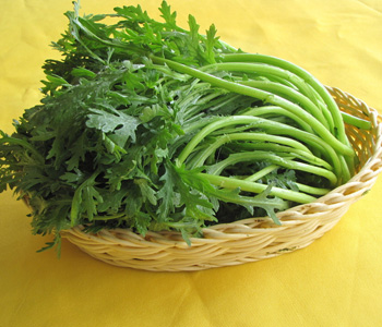茼蒿的茎和叶可以同食,有蒿之清气、菊之甘香,鲜香嫩脆的赞誉,一般营养成分无所不备,尤其胡萝卜素的含量超过一般蔬菜,为黄瓜、茄子含量的1.5~30倍。