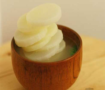 做法三:白萝卜去头去尾,刨去外皮,切成块加适量水煮熟。待放凉后加入适量蜂蜜搅拌均匀,即可饮用。