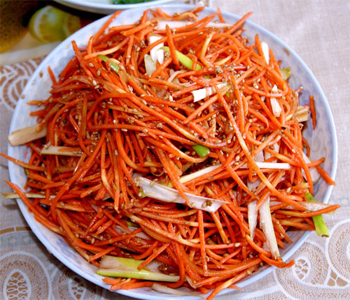 胡萝卜含有大量纤维素、多种维生素及微量元素和双链核糖核酸。纤维素可促进胃肠蠕动,防治便秘。双链核糖核酸能诱导人体产生干扰素,增强人体免疫力。萝卜含有更多的胡萝卜素,也可做药膳用。而今天,妈网百科将为大家介绍凉拌胡萝卜丝的做法以及相关问题。