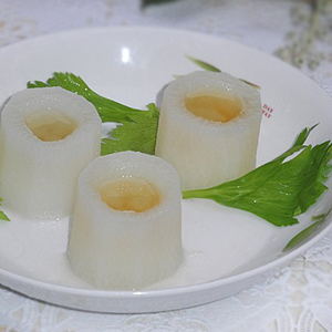 做法三:把白皮大萝卜洗干净后,挖空中心,加入适量蜂蜜,放入大碗内,加清水蒸煮20分钟,熟透即可食用。