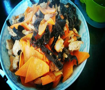 如果以前吃过食堂,相信有很多朋友知道有这样一道菜,木耳胡萝卜炒肉。通常食堂会将胡萝卜、木耳和肉丝切丝,味道香甜可口,算是食堂里的一道美食。