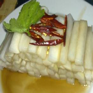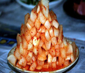 腌制白萝卜条可以开胃。白萝卜的营养价值是丰富高的,其钙质的含量是菠菜的4倍,维生素C的含量与柠檬相近,而铁的含量又是鳗鱼和肝脏类食物的3倍,维生素 B1的含量也要比豆浆中的含量多60%,白萝卜中的维生素B2含量又是牛肉的2倍,并且还含有大量的胡萝卜素。白萝卜的辛辣成分可促进血液循环和增强新陈代谢,并且还具有利尿、排毒、改善便秘问题的作用。一般人群均可食用。白萝卜生食熟食均可,其味略带辛辣味。中医认为,白萝卜可“利五脏、令人白净肌肉”。白萝卜之所以具有这种功能,是由于其含有丰富的维生素C。维生素C为抗氧化剂,能抑制黑色素合成,阻止脂肪氧化,防止脂褐质沉积。因此,常食白萝卜可使皮肤白净细腻。现在正是白萝卜上市季节,赶紧多囤一些在家吧。