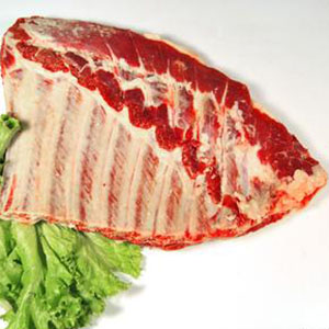 肋排是背部整排平行的肋骨,骨头多肉少,是排骨中最好的一种。因为有一侧连接背脊,所以骨头会比较粗,肉层则比较薄,看起来非常分明。