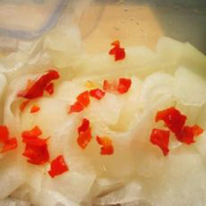 腌制白萝卜应选择大小适中、表皮包满、新鲜、水分充足者。无需刮皮,带皮的口感更有层次。切白萝卜片时不要切得太薄,太薄虽然易入味,但就不脆了。另外,白萝卜有强烈的辛辣味,所以在第一次压出水后,以凉开水揉洗一下,再压一下让辛辣味去除得多一点,腌渍的时间也相应比其他酱菜久一点,这样做出的腌萝卜口味更好。腌制时,食材选择通常以口感脆、纤维多又水分少的为主,制作时,用盐使食材脱水后,清洗及腌制的过程都需要使用凉开水,这主要是从保存的的卫生角度考虑,如果使用自来水容易使制作好的腌菜变味及变质。制作好的如果不需要立即食用,腌制2—3天,不仅更入味,口感也更好。未食用完的可以放入消过毒的玻璃瓶或者保鲜盒中,存入冰箱冷藏即可。