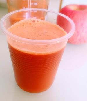 烹调小提示:如果给小宝宝或老人饮用时,可将胡萝卜、苹果削皮洗净后切成小块,放入锅内加适量清水烧煮,烧煮10分钟后用清洁的纱布过滤取汁即可。