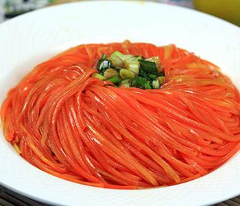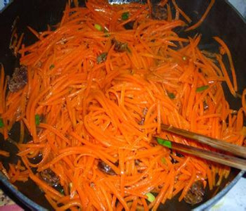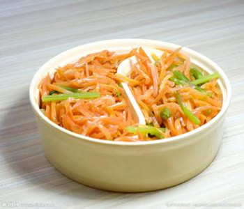 胡萝卜富含蔗糖、葡萄糖、淀粉、胡萝卜素以及钾、 钙、磷等,能为人体提供丰富的维生素A,而且低热量,是减肥一族的理想美味。胡萝卜熟吃更易于营养成分的吸收,炒胡萝卜丝是常见的烹饪做法。下面为大家介绍几种炒胡萝卜丝的做法。