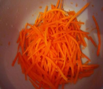 1、将胡萝卜洗净后切丝。不要食用切碎后水洗或久浸泡于水中的萝卜。