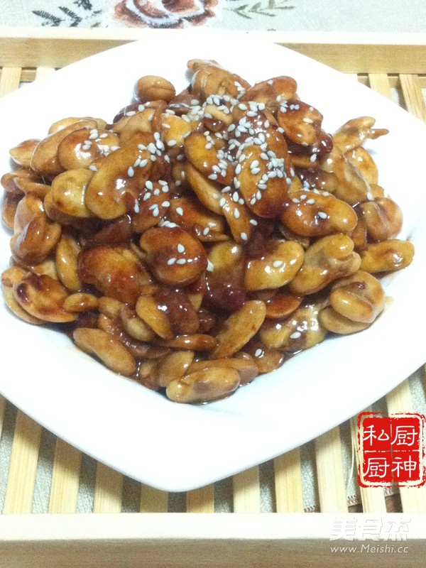 鲜香可口,素食精品。 主料 蚕豆250克 腐乳(红)1块 辅料 蚝油10克 生抽8克 盐2克 糖3克 姜2片 香油少许 水适量 腐乳烧蚕豆的做法 1.蚕豆去皮洗净, 2.腐乳一块, 3.姜两片, 4.锅里放适量油烧热煸香姜, 5.放蚕豆煸炒, 6.加蚝油,生抽,腐乳,加适量焖烧4分钟左右放盐,糖,香油即可。 烹饪技巧 烹饪时少放盐,如果口味重可以适量在加一点点盐。