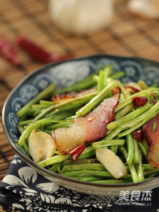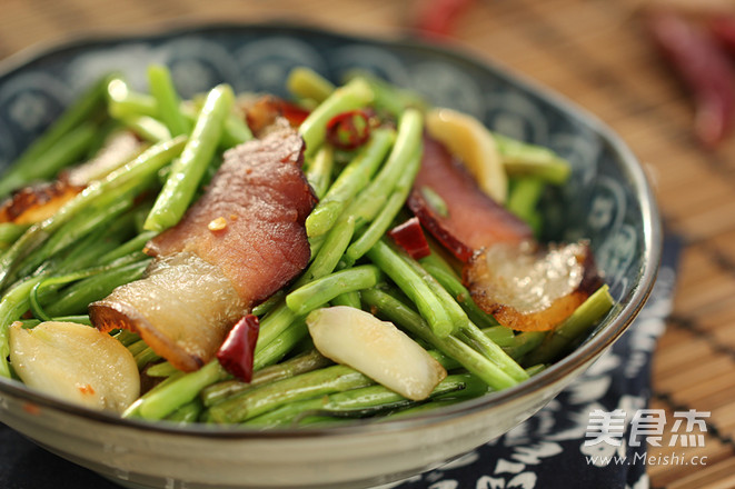 5. 直至炒到腊肉中肥肉透明,油脂微微渗出;
