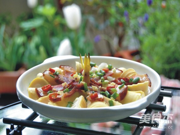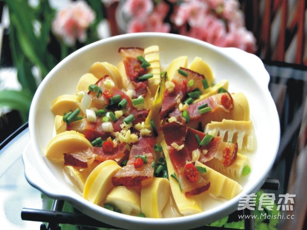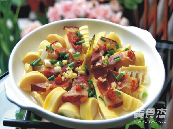 6.出锅撒上葱末就OK了~香气逼人的腊肉蒸笋就可以开吃啦~