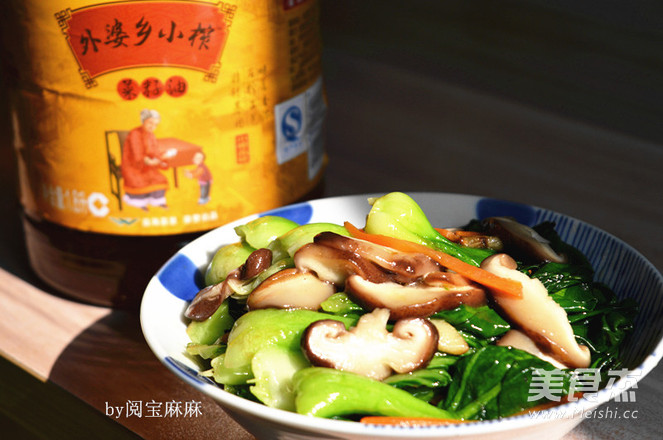 青菜300克 香菇100克 胡萝卜1段 大蒜2瓣 菜籽油1大勺