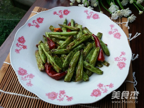 简单美味的家常菜。 主料 四季豆450克 辅料 干辣椒4个 花椒10粒 食盐1/4茶匙 味精适量 食用油适量 干煸四季豆的做法 1.将四季豆掐去两头的尖,撕掉老筋,掰成段 2.清洗干净,沥干水分 3.锅中油烧热。放入四季豆中火炸制 4.炸至表皮褶皱后盛出 5.锅中留少许底油,放入干辣椒和花椒粒炒香 6.倒入四季豆翻炒数下 7.放入食盐、少许味精炒匀即可