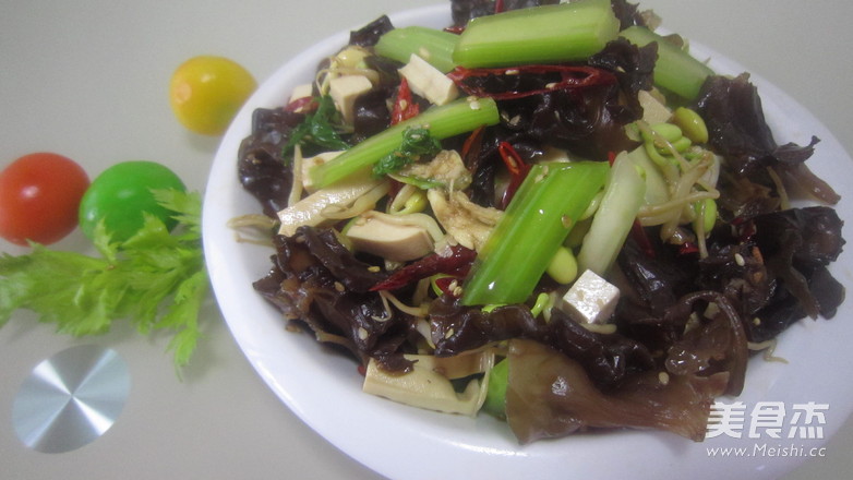 干辣子丝2克 熟芝麻2克 盐4克 生抽1汤匙 米醋5克 西芹10克