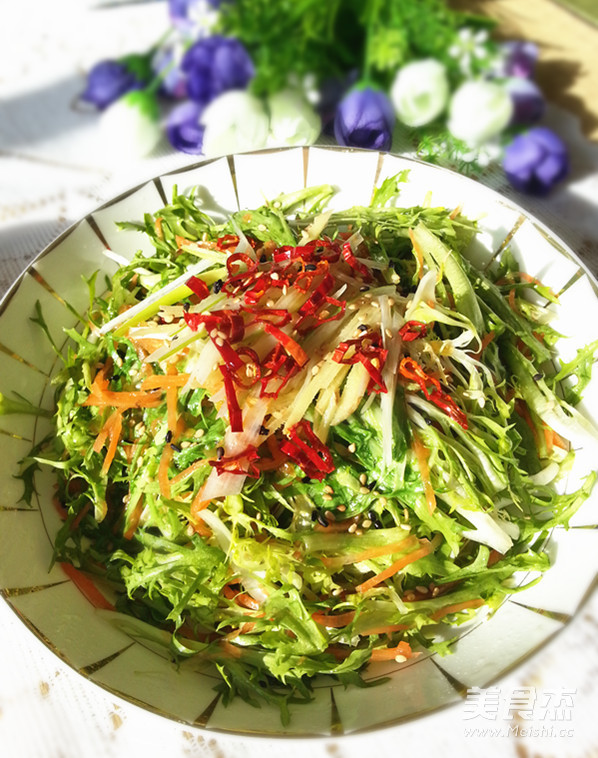 冬季干燥,容易引起上火,一盘脆脆绿绿的苦苣,既可以清火,又可以让久食肥甘油腻的人清清肠胃。