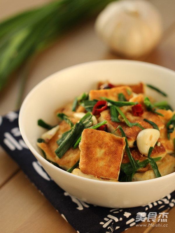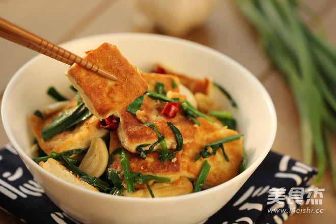 1、先将臭豆腐双面煎至金黄, 臭豆腐放入锅中时油要烧热, 不要急于翻动,轻轻晃动锅,臭豆腐能移动了再翻面, 这样豆腐不容易破皮; 2、下入韭菜段不要炒过长时间,变色后就可以加入盐调味, 翻炒均匀即可。