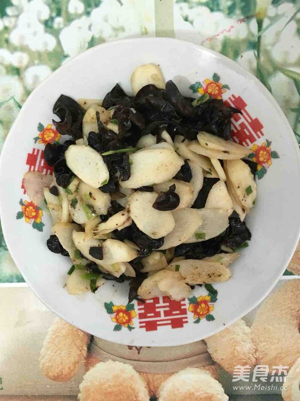 第一次尝试做山药。 主料 山药1根 黑木耳20克 辅料 油3勺 盐4克 葱1根 酱油3勺 山药炒木耳的做法 1.将山药削皮,洗干净,切成片状。 2.将木耳用热水泡开,然后用凉水洗干净,待用。 3.等油开了,放入葱蒜,炒出香味。 4.等配料炒出香味,放入山药,翻炒,然后放入老抽,均匀上色。 5.等山药上色均匀以后,放入木耳,放入盐,翻炒至熟透。 6.等菜炒好了,出锅盛入盘中,即可享用了。 烹饪技巧 山药不要炒很久,脆脆的比较好吃。
