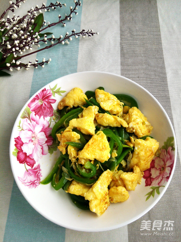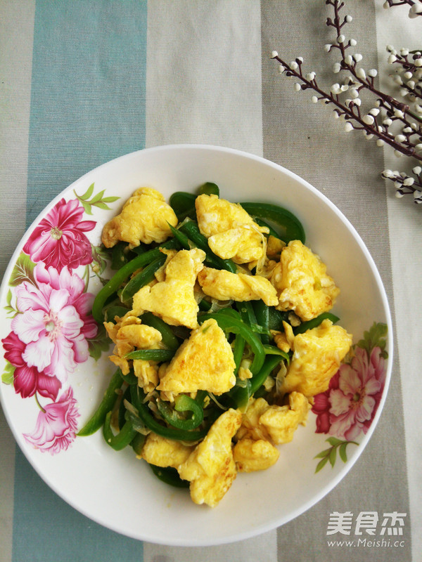 家常小炒 主料 鸡蛋2个 青椒1个 辅料 橄榄油2勺 大葱适量 盐4克 生抽少许 家常青椒炒鸡蛋的做法 1.鸡蛋打散,加盐搅匀;青椒去籽,切条;大葱切少许。 2.热锅热油,小火把鸡蛋炒到七八成熟,盛出备用,或者堆到锅的一侧。盛出来最后和青椒烩一下,鸡蛋会比较嫩。 3.热锅热油,爆香大葱。 4.下青椒和盐,炒至断生。要口感脆脆的,不要炒到变色发软了。 5.加入鸡蛋翻炒均匀,出锅前在锅边点少许生抽,提色提味,盛出即可。