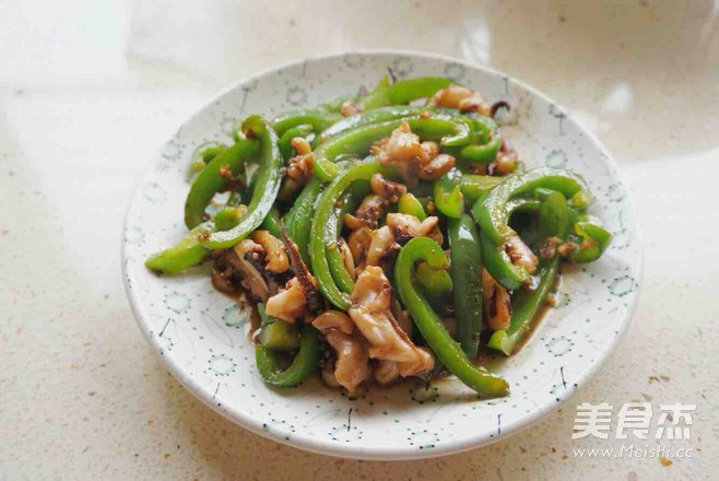 好吃做起来又简单,适合入门级的新手哦 主料 鱿鱼2个 青椒2个 辅料 油适量 酱油适量 料酒2茶匙 白砂糖2茶匙 姜3片 蒜1颗 青椒炒鱿鱼须的做法 1.青椒洗净切成条,姜蒜切碎 2.鱿鱼洗净切好,放入开水中焯一下捞起备用 3.热锅后加入油,放入姜蒜爆香 4.加入鱿鱼须翻炒,之后加适量料酒,酱油,糖继续翻炒 5.加入青椒后再加少许水翻炒,翻炒至青椒熟后收汁即可。