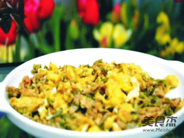 #春之味#——香椿炒蛋.香椿芽.真正是只有春天才能享受的口福~搭配鸡蛋香气四溢,在春季,这道香椿炒蛋是我家餐桌上最受欢迎美味佳肴。喜欢极了~ 主料 香椿芽200克 鸡蛋3只 辅料 盐3克 橄榄油适量 香椿炒蛋的做法 1.先将香椿择洗干净,沥干待用 2.香椿芽用开水焯烫 3.捞出挤干水份,切碎 4.放入大碗中,打入3只鸡蛋 5.加盐搅拌均匀 6.锅加橄榄油,油热倒入蛋液炒熟 7.当两面均成金黄色后即可出锅 8.装盘,味美鲜香的香椿炒蛋就可以开吃啦~ 烹饪技巧 还可以加现磨黑胡椒粉可以去掉鸡蛋的腥气,