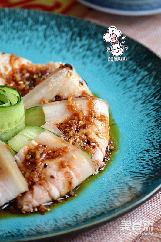 制作这道【蒜泥白肉】首先要选购新鲜的五花肉,这样肉质不但鲜美而且吃起来口感Q弹。五花肉的瘦肥夹层要均匀,可以挑选不要过肥的肉,但是也不能太瘦。太肥的五花肉吃起来会腻,而太瘦的五花肉吃起来不滑嫩,所以肥瘦比例半肥半瘦是最佳的选择。而切肉的时候尽量把肉切的薄一些,这样口感会更棒。