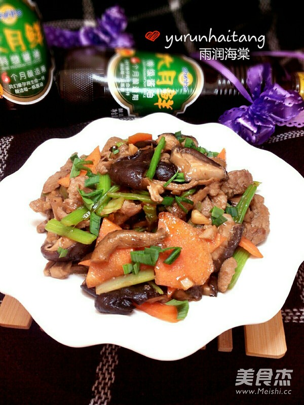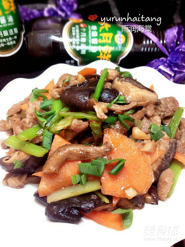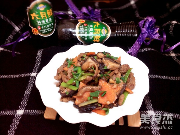 1.准备食材:干香菇提前泡发好撕成小块,猪肉切成粗条用少许酱油和淀粉拌匀