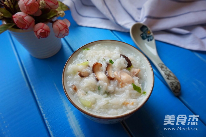 这款香菇鸡肉粥含有丰富的蛋白质、脂肪、碳水化合物、钙、磷、铁、维生素B1、维生素B2、尼克酸等多种营养素。是一款即美味又保健的粥。