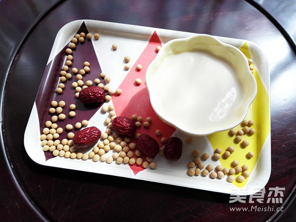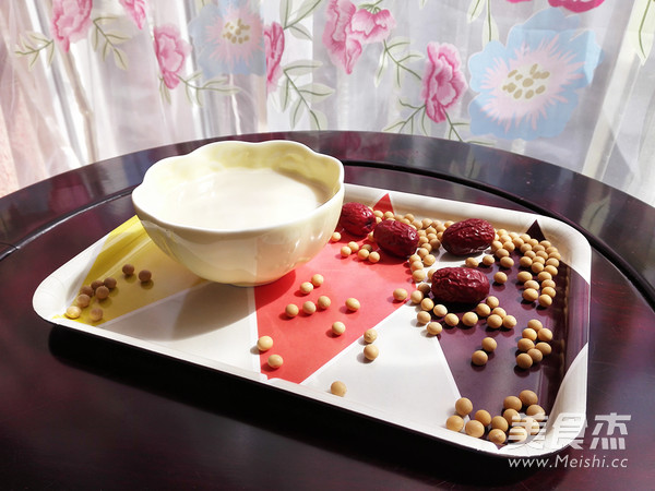 第一次做干豆豆浆,没有泡豆,味道也不错,如果说有区别的话,就是豆香味不够浓,至于其它的,真没有明显的区别。 主料 黄豆80克 红枣5颗 辅料 清水900毫升 红枣豆浆的做法 1.1. 黄豆和红枣清洗干净 2.2. 把红枣的核去掉,并且撕碎, 3.3. 把黄豆和红枣一起放进豆浆机,加好水 4.4. 按功能键,选择倍浓五谷功能,点开始, 烹饪技巧 红枣一定在去核,且撕碎。
