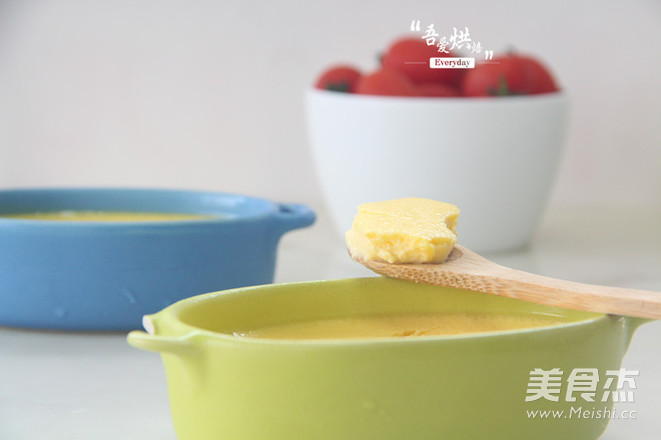 注入烤盘的水要尽量多,否则烤出来的布丁会很老,所以需要用到深烤盘哦!