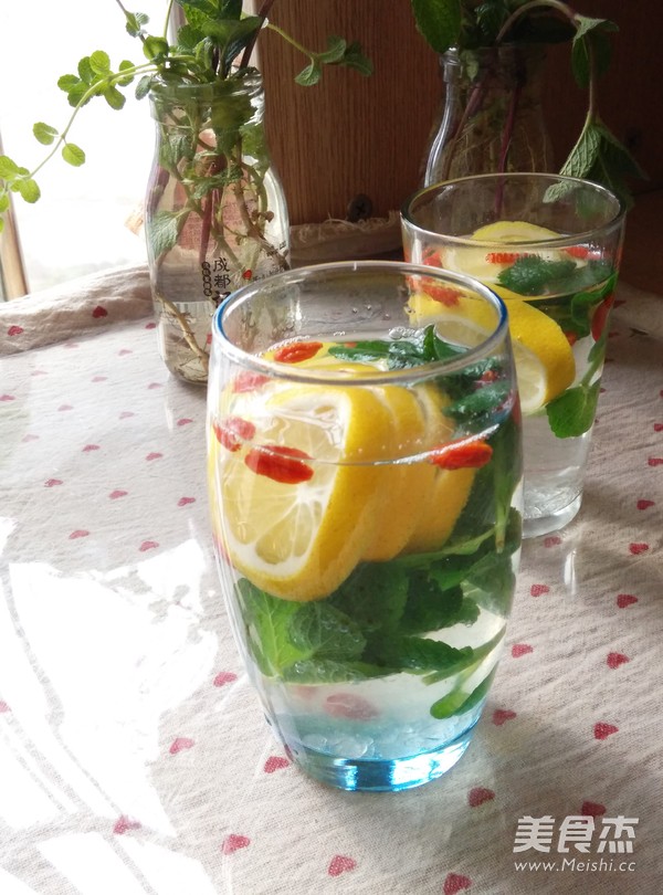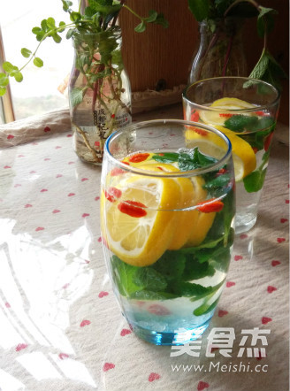 很喜欢喝柠檬茶,醋酸甜甜的滋味,朋友来家里作客,泡一杯鲜茶招待以示热情。 主料 柠檬1个 枸杞子5克 薄荷(鲜)适量 辅料 冰糖5克 薄荷柠檬茶的做法 1.原材料 2.枸杞用清水泡一下灰尘 3.柠檬用盐搓洗表面,再切片 4.材料加入茶杯 5.淋入鲜开水 烹饪技巧 看自己口味,一杯水一般来说三片柠檬即合适了。
