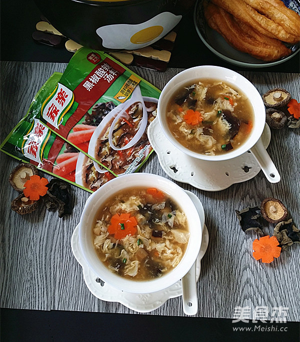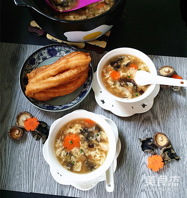前不久炖了一回酸辣汤,酸酸辣辣的,不仅挺好吃的而且还很开胃,感觉很不错;这次又换成了黑椒口味了;以原味酸辣汤的基础上,增加了微微的黑胡椒辛辣,边吃着自己炸的油条边喝着黑椒酸辣汤,很满足~~~