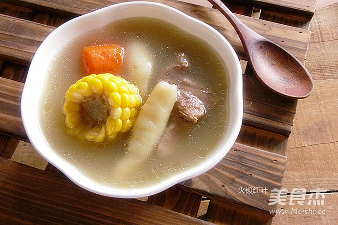 竹芋是广东人的煲汤常用材料,可清肺止咳;清热利尿,对肺热咳嗽;小便热痛都可有缓解作用。 主料 大骨400克 鲫鱼1条 辅料 盐适量 姜10克 玉米300克 胡萝卜200克 竹芋200克 白茅根50克 水适量 竹芋茅根汤的做法 1.备材料:肉骨出血水,鲫鱼用油、姜片煎过,红萝卜、玉米切大块 2.取一汤锅,放进所有材料与适量的水 3.加盖煲1.5小时以上 4.汤煲好后加入适量的盐,再煮5分钟,关火即可装碗饮用