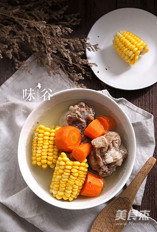 4.关火前放少许盐。一锅清甜的胡萝卜玉米筒骨汤就炖好了哦。习惯性的来个特写,色诱一下亲们的味觉。